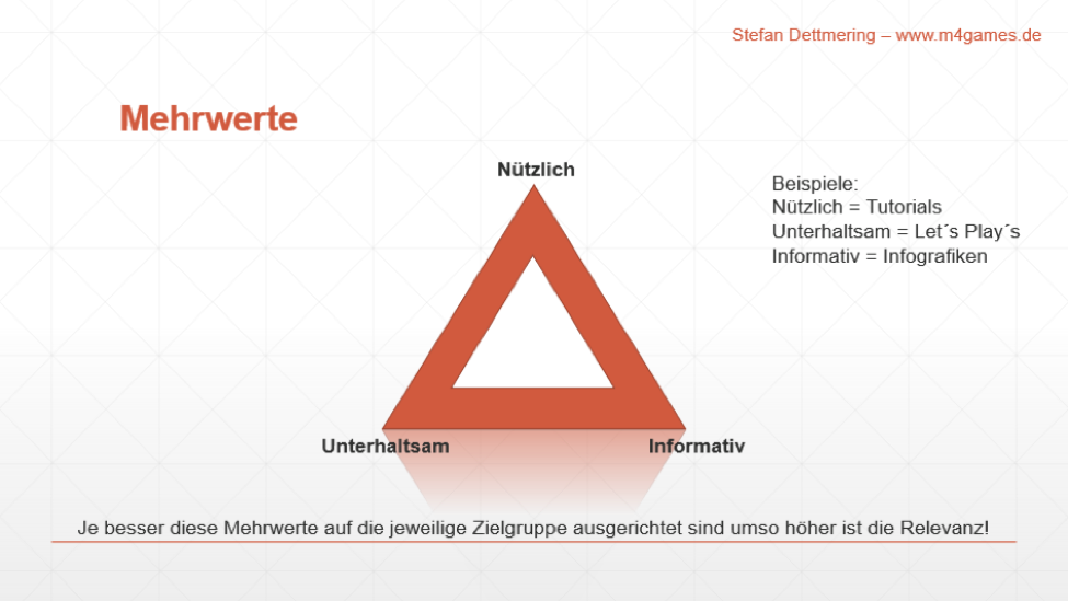- Bezogen auf die Gamer könnten nützliche Inhalte beispielsweise kostenlose Lösungen von Rätseln sein.