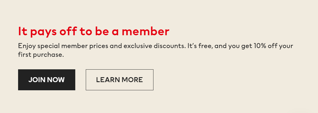 Check out how fashion brand H&M does it. In exchange for signing up, email subscribers get 10% off their first purchase. Plus, the promise of future rewards, such as special prices and discounts.