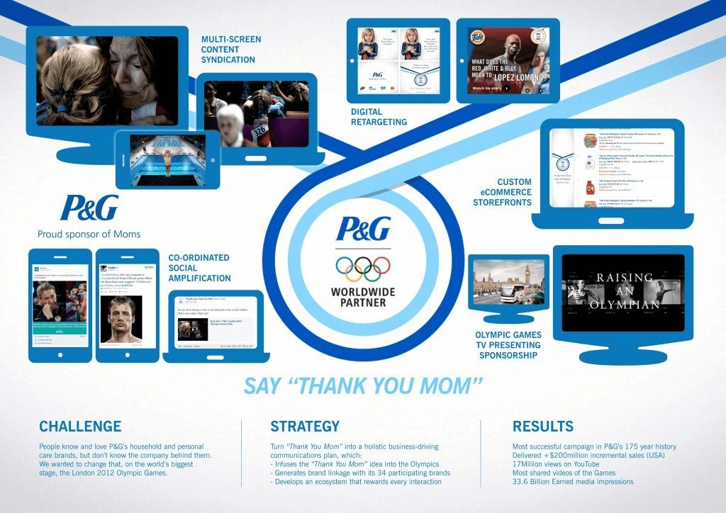One of our favorites is Procter and Gamble’s “Thank You Mom,” campaign. The campaign won international acclaim and brought in an additional $500 million from the London Olympics alone.