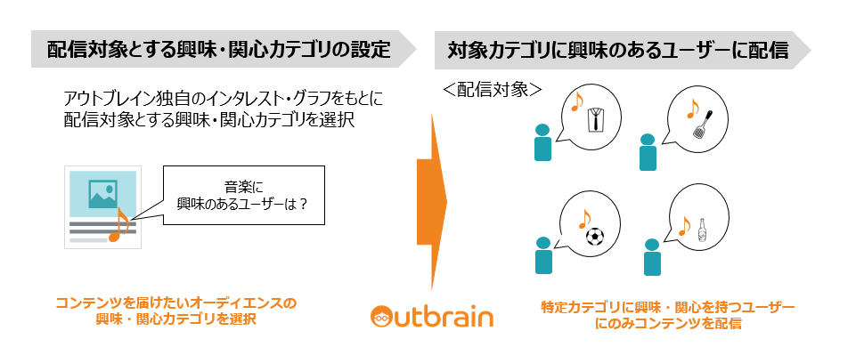 グローバル10億ユーザー、月間2750憶回のレコメンド情報をもとにアウトブレインのアルゴリズムが特定の興味・関心カテゴリーにマッチするユーザーを特定、リーチします。