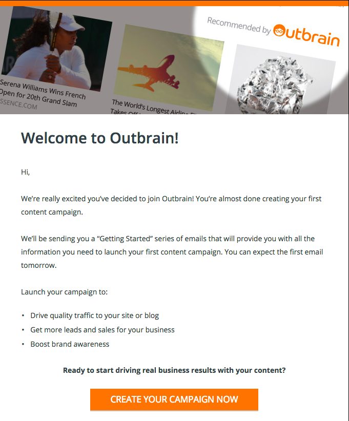 In this email, the user is reminded of the main things they can achieve by opening an Outbrain content campaign (or all they’ll be missing if they don’t).