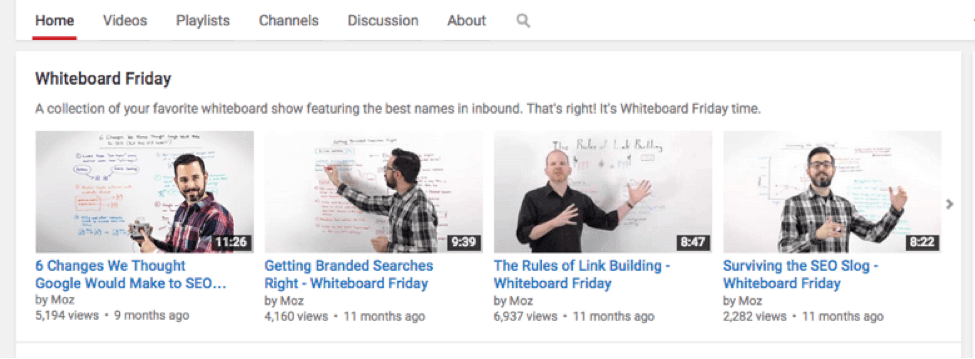 Provavelmente, um dos melhores exemplos disso é a série de vídeos Whiteboard Friday, do Moz. Eles incentivam os profissionais do marketing na internet a continuar voltando.