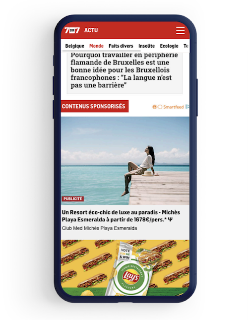 Auf Empfehlung von Outbrain implementierte 7sur7 das Smartfeed, ein End-of-Article-Format, welches verschiedene organische und bezahlte Empfehlungen kombiniert. Das Card-Design erhöht das Engagement der Leser, indem alle Content-Arten, von redaktionellen und Outstream-Videos bis hin zu gesponserten und nativen Platzierungen, genutzt werden. Durch die Übertragung des von Social Media bekannten Feed-Erlebnisses auf das Open Web konnte 7sur7 ein nahtloses, auf die Interessen der Leser zugeschnittenes Entdeckungserlebnis schaffen.