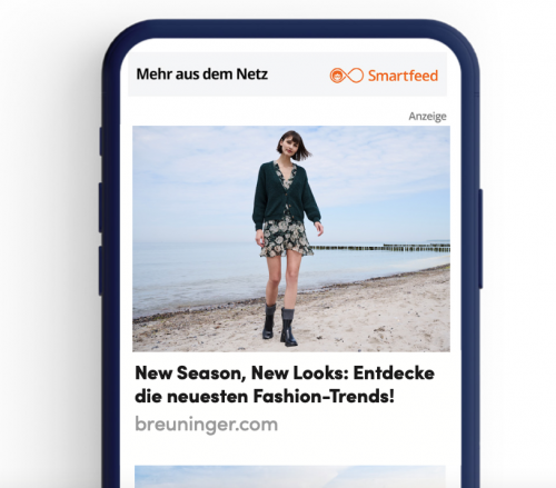 Aufgrund der Premium-Marken, die Breuninger im Online-Shop anbietet, ist es essentiell für das Modeunternehmen, die richtige modeaffine Zielgruppe zu finden. Dabei hilft Outbrains enorme Reichweite (in Deutschland 91% aller Internetnutzer über 16 Jahre*) und die proprietären Interessendaten, die sicherstellen, dass die richtigen Personen die Anzeigen sehen. Breuninger fokussiert sich bei den Kampagnen auf die Ansprache von Neukunden. Über die passenden Creatives, die die Looks der Zielseiten aufnehmen, kann Breuninger schon in der Ansprache auf Outbrains großflächigen Formaten ein effizientes Targeting erreichen.