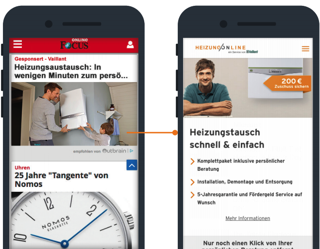 Hierbei werden Besucher, die die HeizungOnline-Webseite besuchten, mit einem Pixel markiert. Verlassen sie die Seite vorzeitig ohne eine Conversion, werden sie anschließend im Outbrain Publisher-Netzwerk identifiziert und über passende Inhalte noch einmal auf HeizungOnline aufmerksam gemacht.