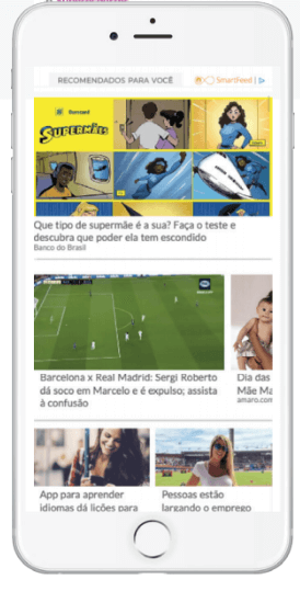 Com a implementação do Smartfeed, solução da Outbrain que permite ampliar o universo de descoberta do leitor oferecendo um maior mix de recomendações pagas e orgânicas, foram testadas diversas disposições e formatações para o feed a fim de permitir o maior incremento de receita, criando um espaço userfriendly, atrativo e relevante para capturar a atenção da audiência.