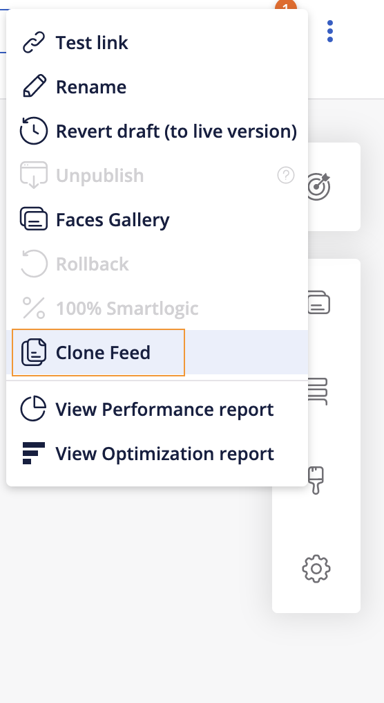 1. Click on “Clone feed” in the 3 dots menu available on the top right hand side of the Studio tab: