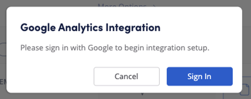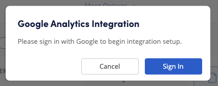 Google Analyticsのアカウントの接続を求めるポップアップが表示されます。(GA4もしくはUA)ご自身のGoogle Accountでサインインするので、「Sign In」を選択します。